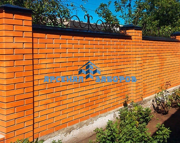 Кирпичный забор на ленточном фундаменте 10 метров