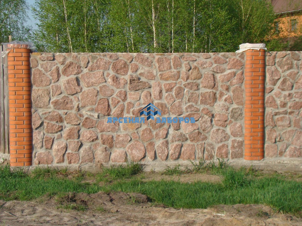 Кирпичный забор с камнем 20 соток